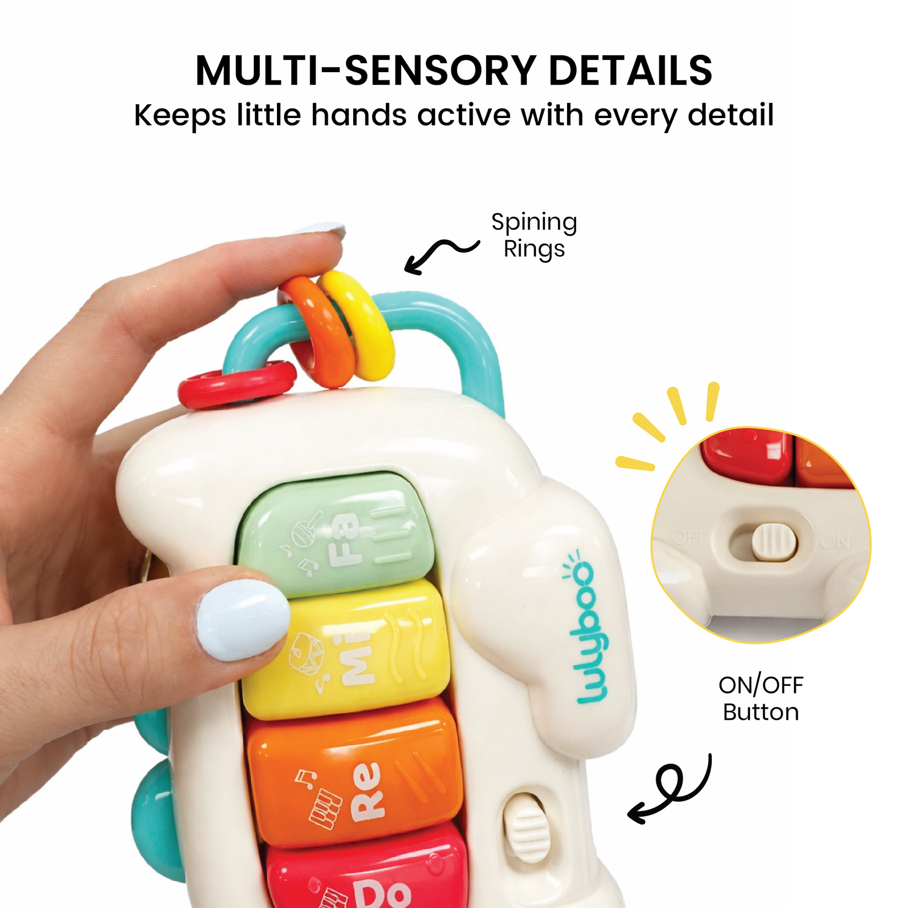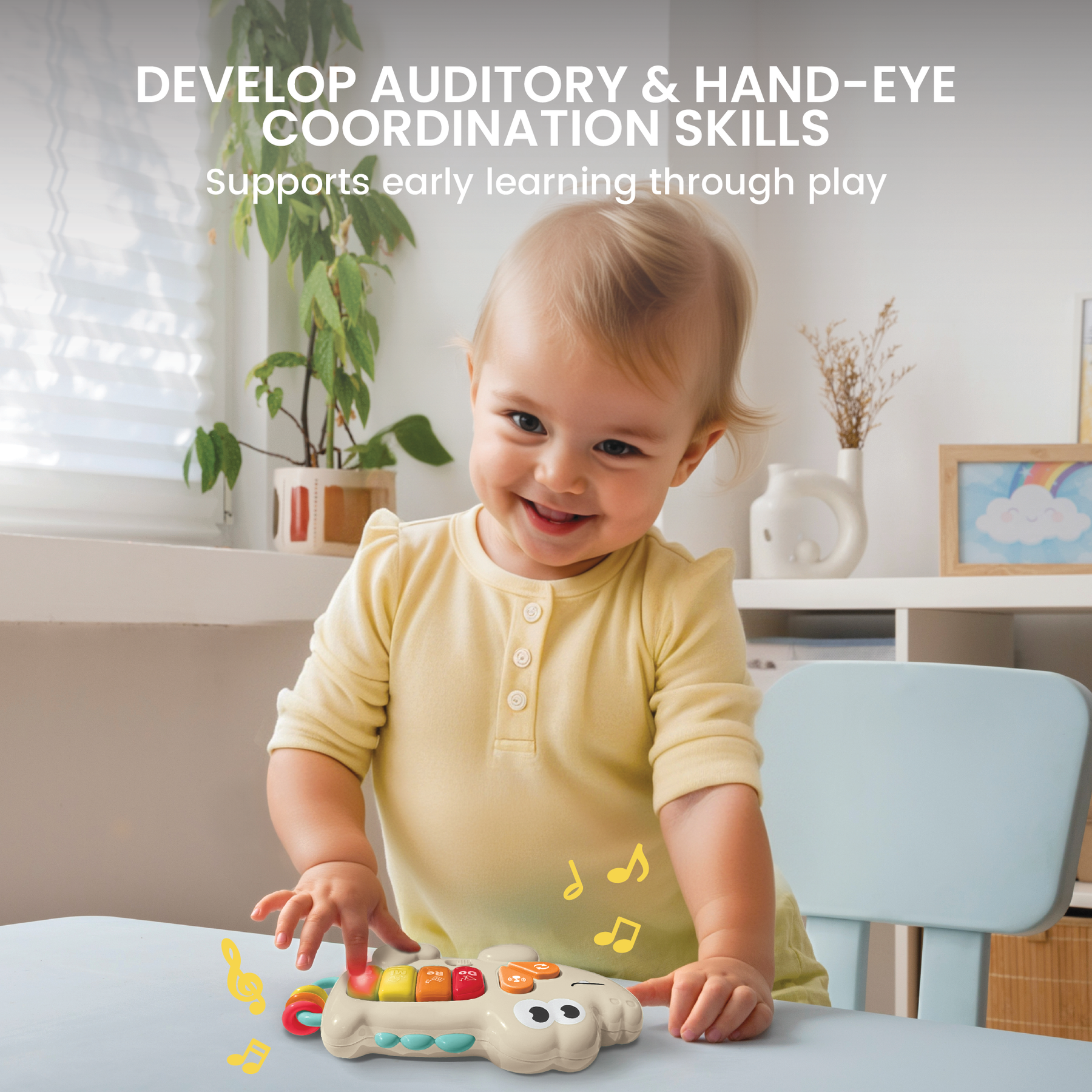 Snap, tap, play, and sing with the Lulyboo Crocodile Musical Toy. Designed for toddlers 18 months and up, this cheerful music toy features light-up piano keys that respond instantly to little hands. Switch between music and lullaby modes to match your child’s energy, from active playtime to calmer moments. Spinning rings add an extra layer of hands-on fun while supporting fine motor development and coordination. Compact, lightweight, and ready to play with batteries included, it’s an easy choice for everyday play or gifting.