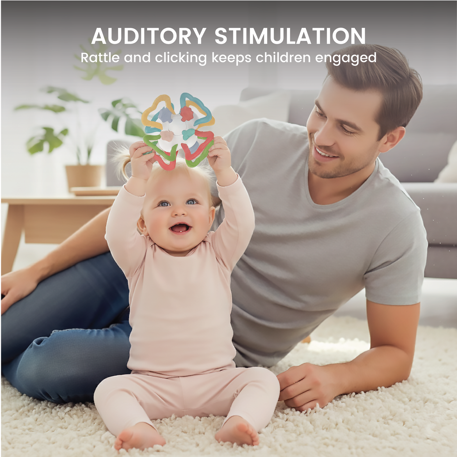 • Function & Design features: Textured loops, 360° twist, rattling center