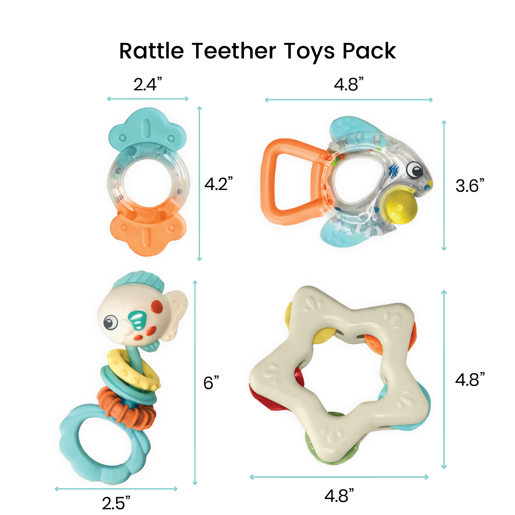 Rattle Teether Toys Pack – 4 Piece Multi-Sensory Set