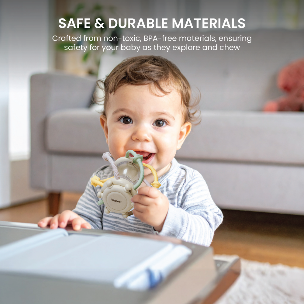 Teething Relief: The teether part of the toy helps babies with teething discomfort, providing a safe and soothing way to relieve sore gums.