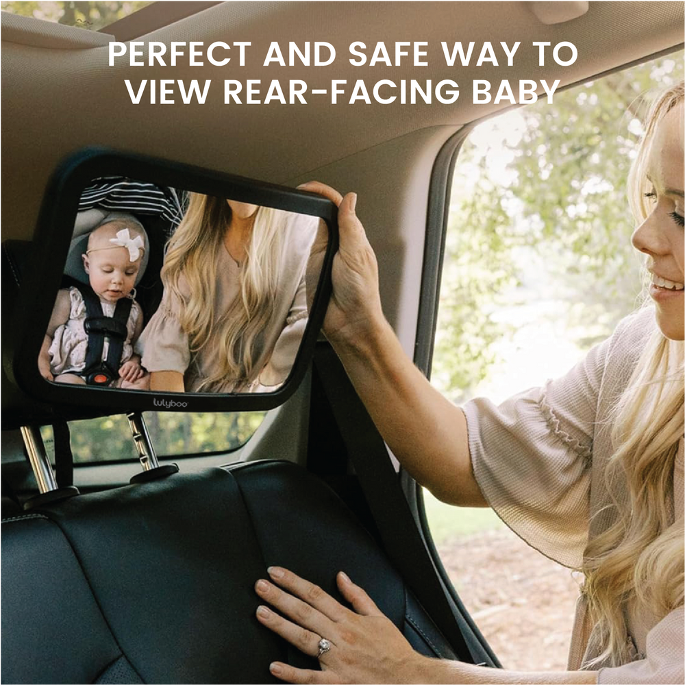 The Lulyboo 360° Rotation Large Backseat Baby Car Mirror allows parents to watch their baby from any angle while on the go.