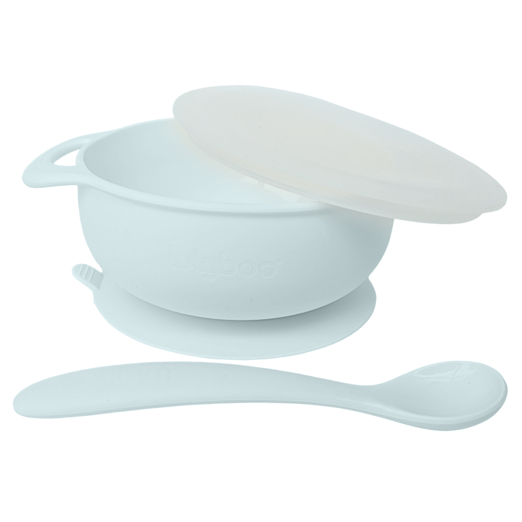 Three-piece set includes a suction bowl, lid cover, and spoon.