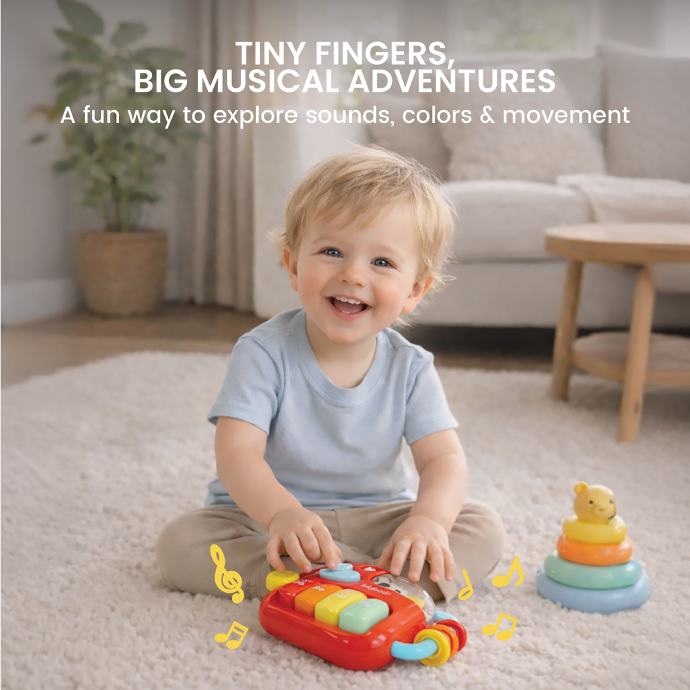 It’s designed for little hands with a built in handle for easy grip and textures to intrigue and sooth child while teething.
