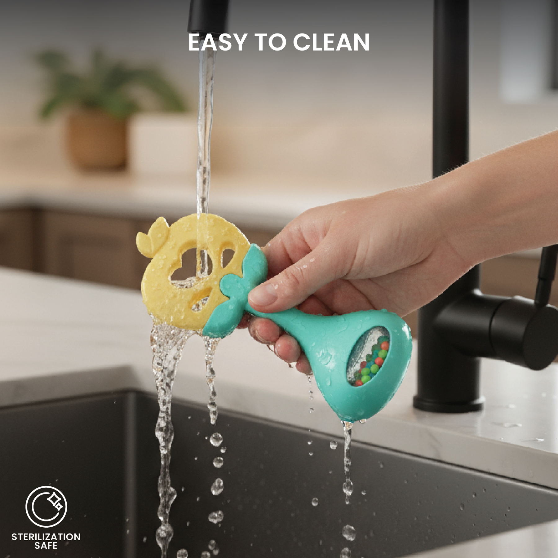 Soothe and entertain your little one with the Lulyboo Multi-Sensory Watermelon Rattle Teether. Crafted from soft, textured silicone, it gently massages sore gums while introducing fun sounds and colors that spark curiosity. Its lightweight design is perfect for little hands to grip, shake, and chew safely. BPA-free, dishwasher safe, and sterilization ready, it’s a joyful and practical addition to every baby’s teething stage-bringing comfort and smiles wherever playtime happens.