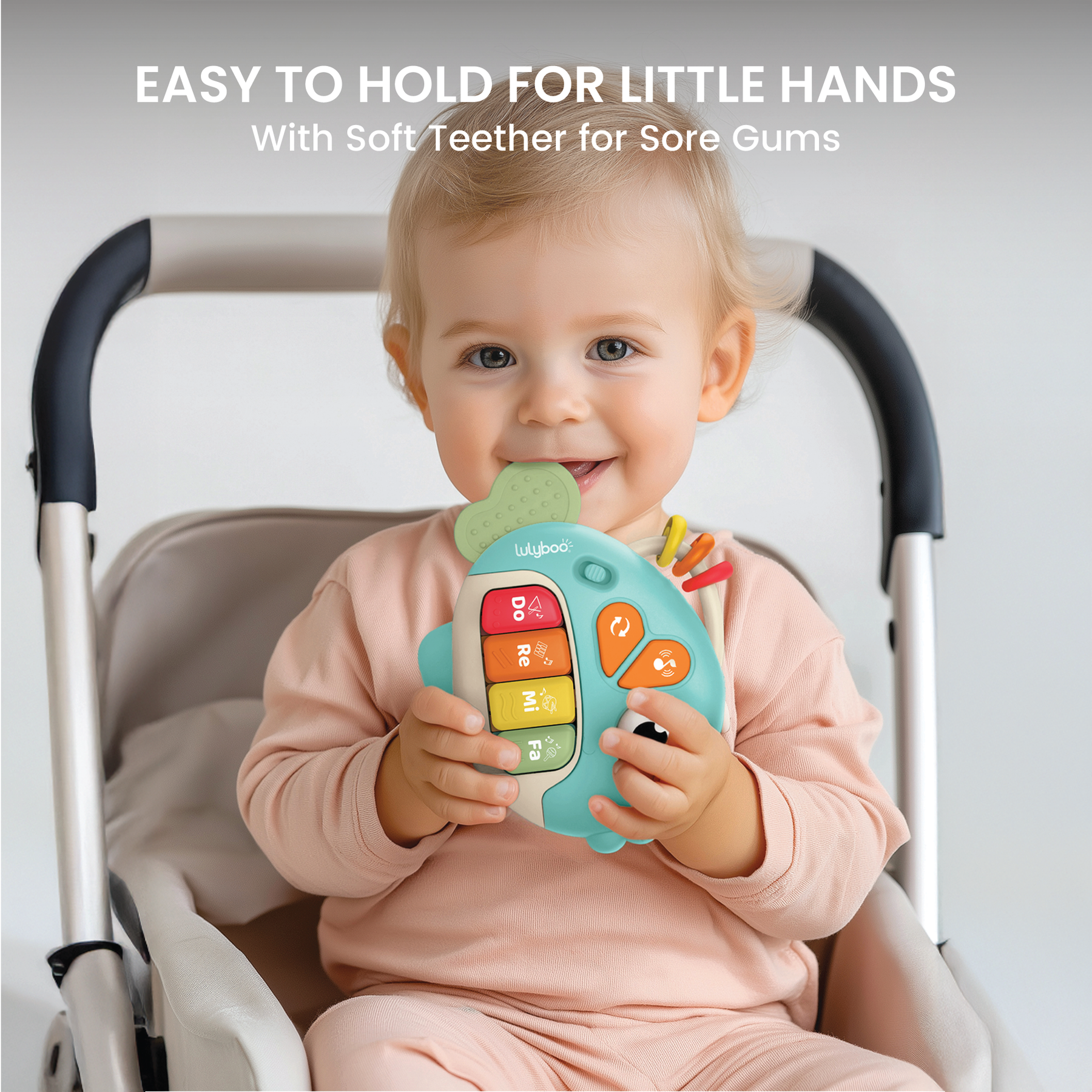 Swim into a world of sound and discovery with the Lulyboo Fish Musical Toy. Designed for toddlers 18 months and up, this playful musical toy features colorful, light-up keys that introduce early notes and rhythm through simple, interactive play. Two play modes—music and lullaby—allow parents to adjust the experience for energetic fun or calmer moments.
